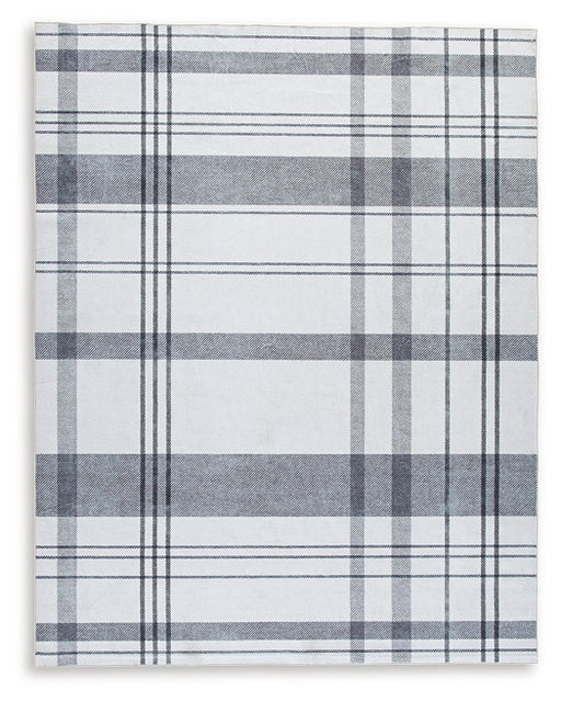 Signature Design by Ashley®A fresh take on iconic plaid, this accent rug is both classic and contemporary. Its plaid design, with shades of gray crisscrossing against a solid...