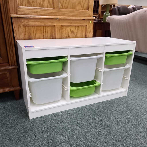 Home EssentialsMulti-functional Design: Combines a large storage compartment with a front bookshelf for toys, books, and art supplies Child-Safe Construction: Ma...