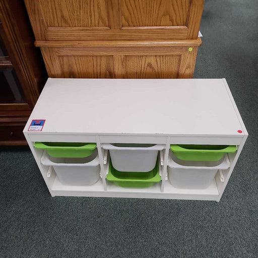 Home EssentialsDesign: Sleek white finish with rounded edges for safety and modern style Functionality: Two easy-access fabric drawers for organized toy and item...