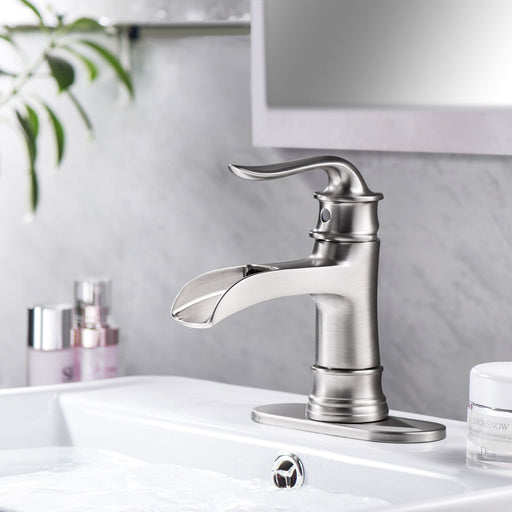 Original price $165.00Original price $165.00 - Original price $165.00Original price $165.00Current price $147.00$147.00 - $147.00Current price $147.00Waterfall Spout Bathroom Faucet With Single Handle And Pop Up Drain - Brushed Nickel