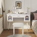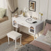 Elegant Vanity Makeup Table & Chair Set Modern Dressing Table With Organizer Writing Desk Charging Port Engineered Wood - White