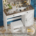 - The vanity desk features well-organized storage with partitions and cabinet doors to keep items in place and easy to find, enhancing makeup efficiency.