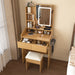 Vanity Table With LED Mirror, Power Outlet, Hairdryer Holder & Padded Stool, Compact Dressing Desk For Small Bedrooms - Wood