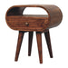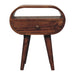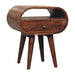 - Artisan Furniture Solid Wood Honey Caramel Circular Bedside with Open Slot - This round style bedside has been constructed from 100% solid mango wood and has one drawer with an open slot, perfect for storing or displaying any bits and pieces before bedtime. It has been constructed from 100% solid mango wood in a honey caramel finish allowing its simple design to be partnered with any styles or finishes of furniture.
