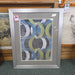 Modern geometric wall art featuring overlapping circular patterns in shades of blue, green, gray, and white. Set in a sleek silver frame, this piece adds a bold and contemporary touch to any space.