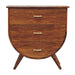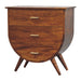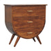 - Agra Bedside - Introducing our exquisite bedside table, meticulously crafted from 100% solid mango wood with a rich chestnut finish. Featuring sleek Nordic-style legs and shiny gold accents, this table offers both beauty and practicality. Its spacious tabletop and convenient drawers provide ample space for your essentials and decor. Elevate your bedroom with this elegant and functional piece.