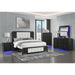 Beverly - 5 Piece Queen Bedroom Set With Cooler, Fluted Design Bed With LED Lights, Upholstered Headboard, Spacious Drawers Construction - Black White