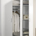 - Conquer clutter and embrace a more organized lifestyle with the Declan 3-Door Wardrobe. Offering ample storage space, this wardrobe is thoughtfully designed to accommodate your belongings while enhancing the aesthetic of your home. Its three large doors swing open to reveal a spacious interior that's ready to house your wardrobe essentials, accessories, and more. Whether you're arranging folded garments, shoes, or personal items, the customizable shelving adapts to your needs, ensuring a clutter-free environment tailored to your lifestyle. A horizontal hanging rod dedicated to coats is complemented by a fixed storage shelf above, providing a designated spot for your accessories and essentials. Finished in timeless white, the Declan 3-Door Wardrobe effortlessly blends with various interior design themes.