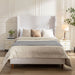 - Premium Upholstery: The bed is covered in beautifully textured woven upholstery in cream white, combining aesthetic appeal with a luxurious feel.