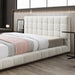 - Ivory Boucle Material: Elongated headboard upholstered in performance velvet fabric.