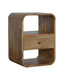 - London Nightsand - This solid wood nightsand has been constructed from 100% solid mango wood in an oak-ish finish and offers a nice rounded look on the edges. It features 1 drawer which comes with a shiny knob and 2 open slots for extra storage. A great, simple addition to the bedroom.
