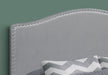 - Elegant Design: The headboard features an arched top design, upholstered in a grey leather-look fabric, complemented by a silver-finish nailhead trim for a sophisticated appearance.
