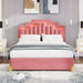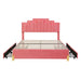 Queen Size Upholstered Platform Bed With LED Lights And 4 Drawers, Stylish Irregular Metal Bed Legs Design - Pink