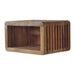 - Solid wood Soba Wall Mounted Bedside - Add this Soba Wall Mounted Bedisde to your bedroom, constructed from 100% solid mango wood in an oak-ish finish, this piece features a unique line hand-carved design around the piece giving it a contemporary feel, and has an open slot for placing anu bits you wish to keep close to your bed.