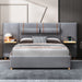 Queen Upholstered Platform Bed, 2 Outlets And USB Charging Ports On Both Sides, 2 Bedside Pillows, Storage Shelves - Gray