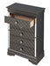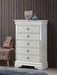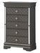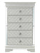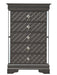 - Embossed "X" Design: Silver Champagne embossed "X" design on wood veneers for a stylish bedroom group highlight.