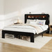 King Platform Bed Frame With Storage LED Headboard And USB Ports - Black