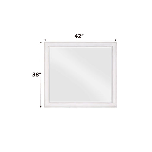 AcmeRefined Charm: This mirror features a Weathered White Finish, offering a transitional design that blends modern simplicity with rustic warmth...