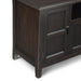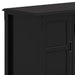 - Features two (2) centrally located open areas with two drawers as well as two (2) framed doors with enclosed spaces; the two (2) large side storage cabinets open to one adjustable shelf each.