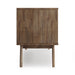 • Mid Century design includes dark brown accent detail and discreet cut out door handles