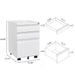 Modern 3 Drawer Mobile Filing Cabinet With Lock, Metal Office Storage, Legal / Letter Size - White