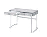 - Modern Elegance: This writing desk features a sleek white engineered stone top and a lustrous chrome finish, exuding modern elegance and sophistication in any workspace.