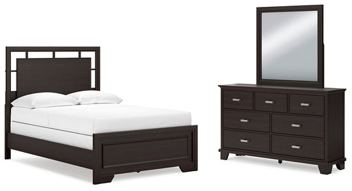 Signature Design by Ashley®Casual contemporary styling with a decidedly modern vibe. This bedroom package's rich dark brown finish is warm and inviting, dressing your restful...