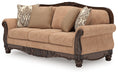 Details Corner-blocked frame, Attached back and reversible seat cushions, High-resiliency foam cushions wrapped in poly fiber, Accent pillows included, Pillows with feather-fiber blend, Polyester upholstery, Decorative turned legs with faux wood finish, Platform foundation system resists sagging 3x better than spring system after 20,000 testing cycles by providing more even support, Smooth platform foundation maintains tight, wrinkle-free look without dips or sags that can occur over time with sinuous spring foundations
