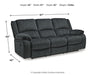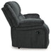 Details Dual-sided recliner; middle seat remains stationary, Pull tab reclining motion, Corner-blocked frame, Attached cushions, High-quality foam cushions wrapped in poly fiber, Polyester upholstery
