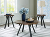 | Details | Includes coffee table and 2 end tables, Made with tubular steel frame, decorative laminate and MDF substrate, Tabletop with replicated reclaimed walnut pattern, Durable matte black powder coat finish, Canted legs | |