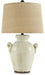 This table lamp illuminates with vintage-inspired style. An antiqued cream glaze on the base boasts a crackle effect. Perfect for farmhouse and cottage-chic spaces, it sits beautifully on an end table.