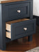 Add homespun charm to your restful retreat with this bedroom package. A modern take on timeless silhouettes, it pairs a dark slate blue finish with light brown tops. Drawer fronts and legs in a classic Shaker style bring an air of beautiful simplicity to the bedroom. Whether it's part of a charmingly curated guest suite or a casually carefree kids room, this set is a welcome addition.