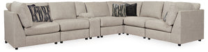 | Details | Includes 7 pieces: 3 armless chairs, console with storage and 3 wedges, Corner-blocked frame, Loose cushions, High-resiliency foam cushions wrapped in poly fiber, Throw pillows included, Polyester upholstery, Console with hidden storage, 2 cup holders and USB port, Exposed feet with faux wood finish, Platform foundation system resists sagging 3x better than spring system after 20,000 testing cycles by providing more even support, Smooth platform foundation maintains tight, wrinkle-free look without dips or sags that can occur over time with sinuous spring foundations | |