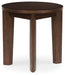 It's hard to say what's most striking about this round end table. Is it the rich warm brown finish or the thick tapered legs? Either way, the table's clean, contemporary aesthetic is perfect for your casual lifestyle. It would look perfect right next to your couch or accent chair.