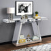 Modern Luxe Full Body Mirror Entryway Table With Trapezoid Base, 360° Reflective Console, Scratch Resistant, Open Storage - Silver