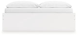 Details Includes platform bed panels, platform rails, roll slats and 2 side storage drawers, Made with engineered wood (MDF/particleboard/plywood) and decorative laminate for the right balance of affordability and durability, Solid white finish, Decorative laminate replicates natural or man-made material surfaces with consistent color, pattern and texture, 2 smooth-gliding storage drawers with ball-bearing side glides; vinyl-wrapped sides and back for durability, Bed does not require additional foundation/box spring; accommodates most zero clearance adjustable bases with the addition of a bunkie board, Mattress available, sold separately, Assembly required