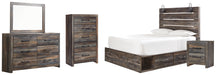 Drystan Queen Panel Bed with 2 Storage Drawers with Mirrored Dresser, Chest and Nightstand Skip to content