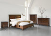Details Includes queen sleigh headboard, rails and storage footboard with roll slats, Made with hardwood solids, select hardwood veneer and MDF substrate, Warm brown cherry finish, Dark bronze-tone knobs, 2 smooth-gliding drawers in footboard, Bed does not require additional foundation/box spring; accommodates most zero clearance adjustable bases, Mattress available, sold separately, Assembly required
