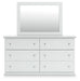 | Details | B139B41: Includes panel headboard/footboard and rails, Made with engineered wood (MDF/particleboard/plywood) and decorative laminate for the right balance of affordability and durability, Replicated solid white paint, Decorative laminate replicates natural or man-made material surfaces with consistent color, pattern and texture, Foundation/box spring required, sold separately, Mattress available, sold separately, Assembly required, B139B40: Includes dresser and mirror, Made of engineered wood (MDF/particleboard), Knobs with pewter-tone finish, Scalloped moulding, 6 smooth-operating drawers, Includes tipover restraint device, Mirror attaches to back of dresser; can also be mounted on wall horizontally or vertically, Safety is a top priority, clothing storage units are designed to meet the most current standard for stability, ASTM F 2057 (ASTM International), Drawers extend out to accommodate maximum access to drawer interior while maintaining safety, B139-91: Made of engineered wood (MDF/particleboard), Pewter-tone knobs, 1 smooth-operating drawer, 1 storage cubby, Scalloped moulding, Small Space Solution, | |