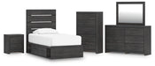 Hollivern Twin Panel Bed with Storage with Mirrored Dresser, Chest and Nightstand