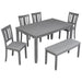6 Pieces Kitchen Dining Set, Rectangular Wooden Dining Table With 4 Upholstered Chairs And A Bench, Dining Table Set For 6 People, Living Room, Home Bar And Kitchen - Gray
