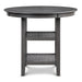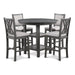 The Amy counter dining set is meticulously crafted of solid Rubberwood and Mindi veneers creating a durable and visually appealing dining set. The farmhouse bisque finish, achieved through a multistep process, gracefully adorns both the chairs and table, highlighting the inherent beauty of the wood grain. The 4-person seating arrangement around the spacious table, featuring two convenient storage shelves, is an ideal setting for family dinners and game nights. Comfort takes center stage with the counter chairs, featuring 100% polyester upholstered seat and back cushions, supported by solid wood legs reinforced with base stretchers that cleverly double as footrests. The distinctive design elements, including a fancy face reverse diamond veneer tabletop, interlocking double X frame chair back, and tapered table legs, add a touch of sophistication to elevate your dining space.
