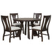 The Chestnut Ridge 5-Piece Dining Set brings together durability and style, featuring a round dining table and four side chairs that create an inviting space for everyday meals or cozy gatherings. Crafted from solid Rubberwood, manufactured woods, and wood veneers, the table offers a strong, stable foundation with sleek transitional styling. Its wide bottom angled legs and rich finish provide a versatile touch of sophistication that complements any décor. The round table offers intimate seating for four, perfect for dining, conversations, or game nights. The side chairs, upholstered in soft 100% polyester fabric with full foam cushioning, ensure ultimate comfort, making this set both functional and stylish for any home.