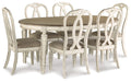 | Details | D743-35: Made of veneers, wood and engineered wood, Antiqued two-tone finish, Separate extension leaf, Table extends by pulling both ends and dropping in leaf, Seats up to 6, Assembly required, D743-02: Made with wood and engineered wood, Distressed, chipped white finish, Stylized ribbon back design, Polyester upholstery over foam cushioned seat, Assembly required, | |