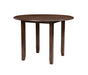 The small space friendly Gia Drop Leaf Dining Table and Chair Set has two 8" drop down leaves that transform this dining table from a 42" round dining set to 24" wide, fitting into compact spaces with ease. The dining table and chair legs are crafted of solid Rubberwood to add strength and stability. Elegant reverse diamond Mindi wood veneer dining table top accents the beautiful wood grains which are highlighted by the traditional brown cherry finish. The set includes two comfortable dining chairs with 100% polyester light brown upholstered seat cushions and backrests. The final touch is Gia's signature interlocking chain design on the chair back, giving this welcoming dining set a touch of sophistication. The result is a casual, contemporary dining set that ideal for dining rooms, kitchen nooks, dorms or game rooms.