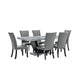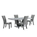 Transform your dining experience with the Lyra Dining Set, a perfect blend of style and practicality. This set features a striking faux marble table and chic upholstered chairs, designed to bring a touch of contemporary glam to your home. The gray and black faux marble tabletop creates a stunning contrast with the solid black U-shaped pedestal base, making it a true centerpiece. Built with a combination of solid and manufactured woods, this dining set is crafted to last. Enjoy the luxurious look of the faux marble surface, which resists water and is easy to clean for effortless upkeep. The sleek upholstered chairs, accented with black legs and silver nail head trim, add a sophisticated edge to your dining space. With fully upholstered backs and supportive foam seat cushions, these chairs offer unparalleled comfort for your dining pleasure. Enhance your home with the Lyra Dining Set and enjoy a perfect mix of elegance, comfort, and convenience.