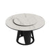 Modern Sintered Stone Dining Table With Round Turntable, Metal Pedestal, And Chairs