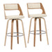 • Modern Appeal: The Cecina Barstool by LumiSource combines contemporary design elements with traditional features, showcasing a curved wood frame, chrome footrest, and a swivel seat that complements its cushioned back and seat.