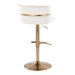 - Modern Glam Design: The Cinch Claire Adjustable Barstool by LumiSource features a unique modern design with a chic metal accent bar and a padded upholstered seat, adding a stylish touch to your dining space.