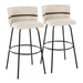 Cinch - Glam / Art Deco Fixed Height Barstool With Swivel With Round Footrest (Set of 2) - Black / Cream